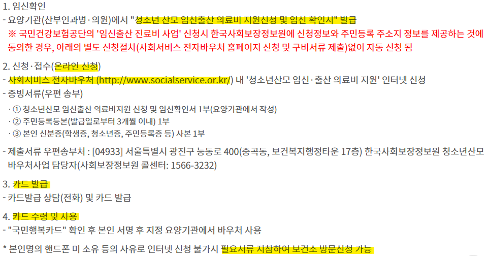 O 신청 방법: (온라인) 정부24 - 맘편한 임신 통합처리 신청, (방문) 보건소 모자보건실