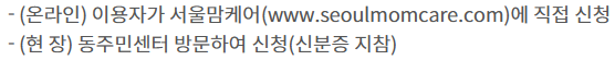 O 신청 문의: 관할 동주민센터 및 보건소 건강관리과 모자보건팀 (☎ 02-2600-5865)