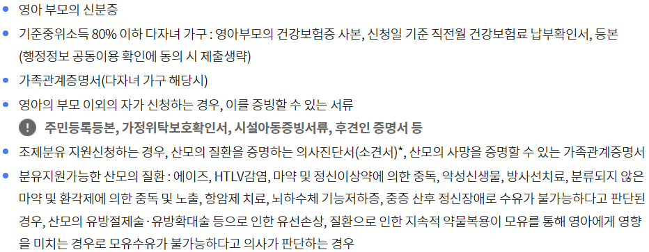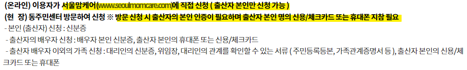 O 신청 문의: 산모의 주소지 관할 시군구 보건소 / 온라인 신청은 복지로