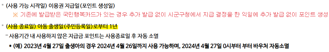 O 사용 기간: 카드 수령 후(국민행복카드 소지자는 서비스신청 승인 다음날)부터 분만예정일 이후 2년까지
